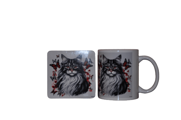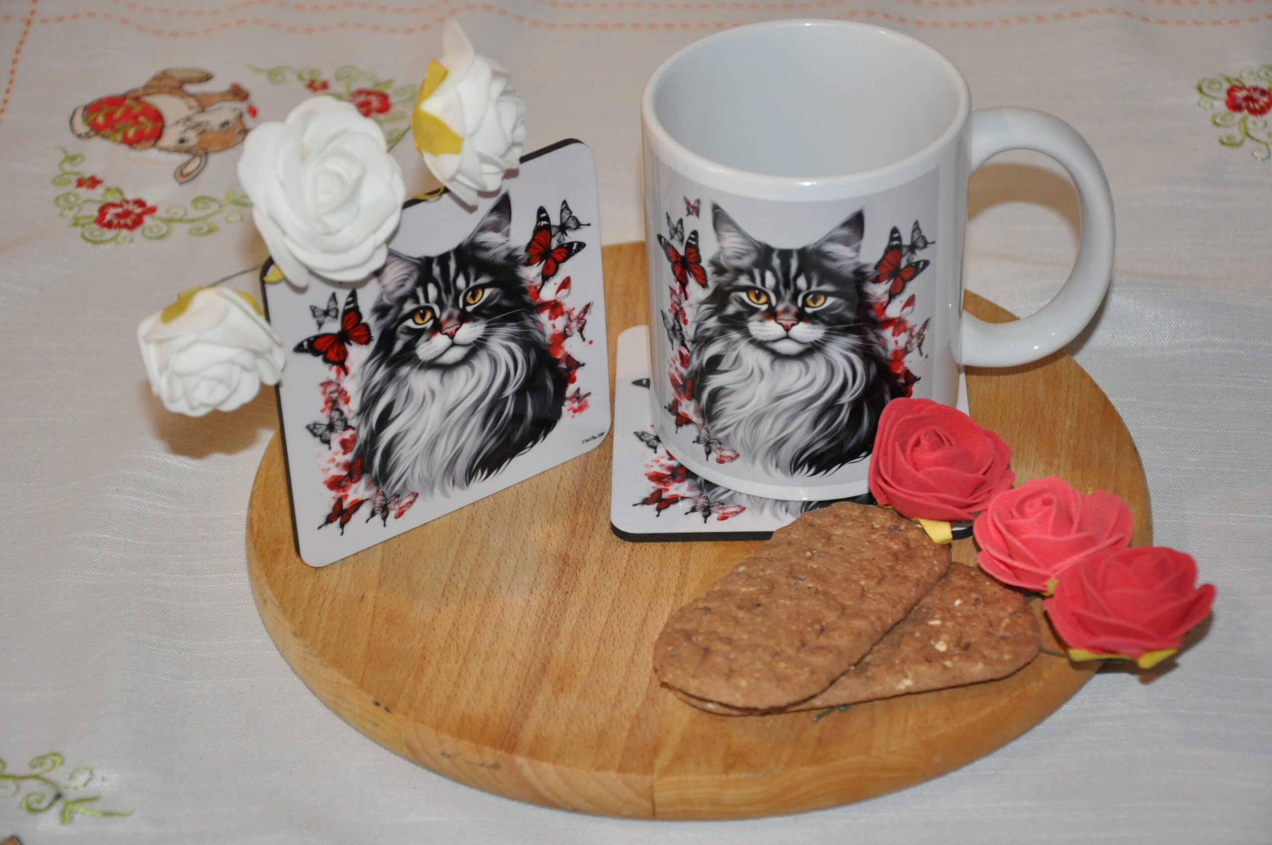 Poranek oraz wieczór z kawą lub herbatą stanie się codziennym rytuałem napełniającym Cię pozytywną energią, jeżeli wykorzystasz do tego zestaw prezentowy z kotem, na który składa się kubek wraz z podkładką z Kolekcji Maine Coon Butterfly. Motyw kota otoczonego motylami sprawi, że poczujesz radość z życia już od pierwszego łyku swojego ulubionego napoju. Jeżeli jesteś miłośnikiem rasy Maine Coon to ten zestaw w sposób szczególny podkreśli Twoją sympatię dla tych wspaniałych kotów.
